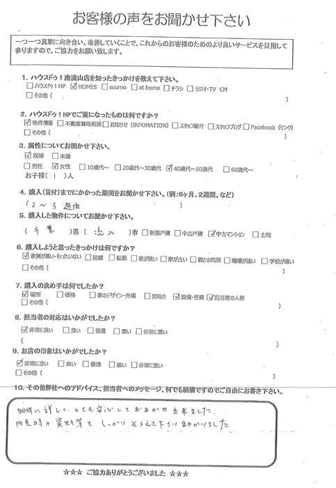 物件に詳しく、とても安心しておまかせ出来ました。